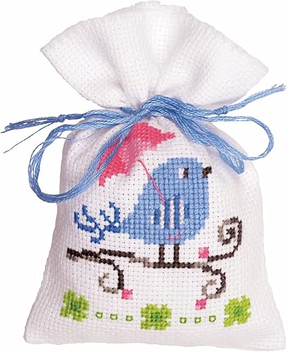 Vervaco Point De Croix Compté Kit Sachet Aromates Complet Set OISEAU BLEU De Broderie Loisir Créatif Maison Decoration Cadeau DIY ca. 8 x 12 cm Counted Cross Stitch Embroidery