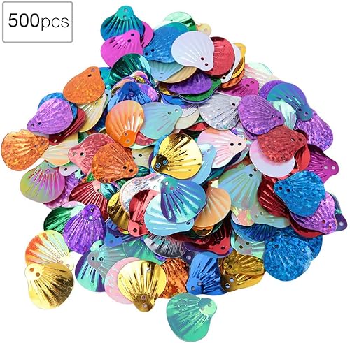 500 Pcs Coquillage Paillettes, Forme De Coquille Paillettes Lâches DIY PVC Forme De Coquille Paillettes Joyeux Anniversaire Fête Décoration À La Main Vêtements Accessoire Couture (Coquille dorée de