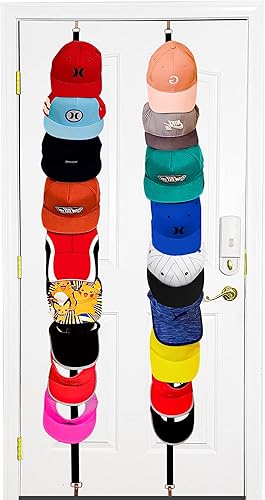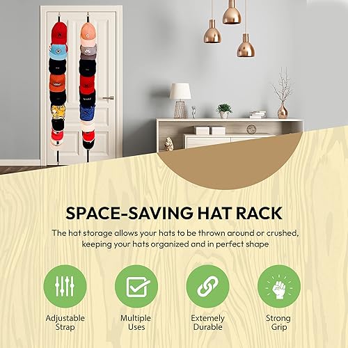 Porte-chapeaux réglable sur la porte, support de casquette de baseball, support de chapeau pour porte de placard, porte-chapeaux, deux sangles, peut contenir jusqu'à 18 capuchons, noir