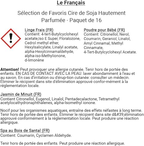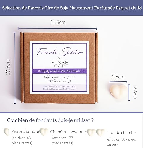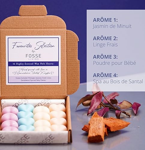 Sélection de Favoris Fondants de Cire Très Parfumée, Lot de 16-4 de Nos Odeurs Favorites - Lin Frais, Poudre Pour Bébé, Citron Vert, Basilic et Mandarine, Spa au Bois de Santal.