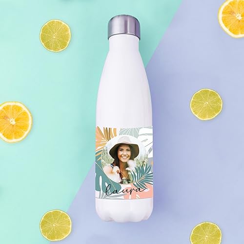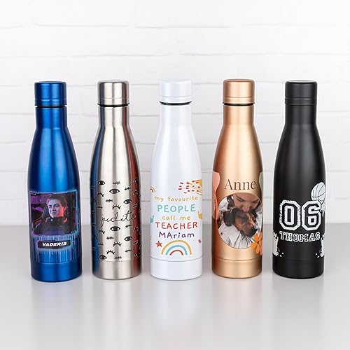 Wanapix | Bouteille en Acier Inoxydable avec Photo 100% Personnalisée | Couleur Noire | 800 ml | Simple Paroi | Ajoutez Vos Photos et Textes | Sans Métaux Lourds | Personnalisation 360º
