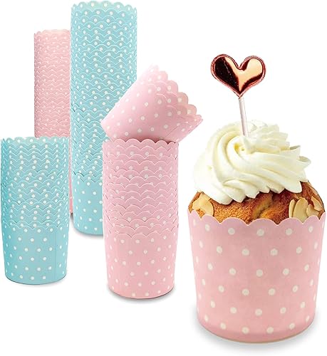 Caissettes Cupcake, 100 Pièces, Muffins Jetables Rose, Moules à Muffins en Papier Bleu, Pour Halloween, Anniversaires, Mariages, Fêtes (Motif à Pois)