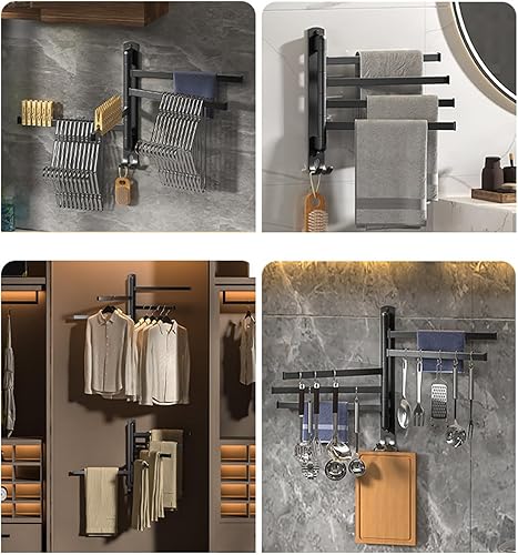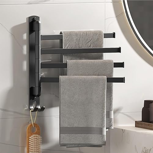 Porte-Serviettes Pivotant à 5 Bras, Porte-Serviettes Pivotant en Acier Inoxydable Support Mural Multiple Porte-Serviettes Multiple pour Maison Salle de Bain Hôtel 30x36cm