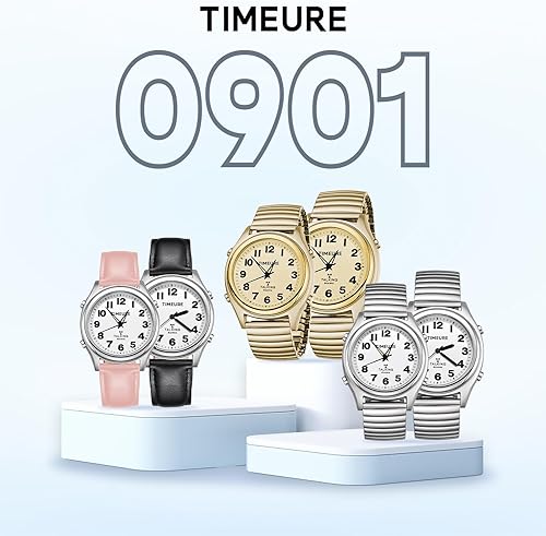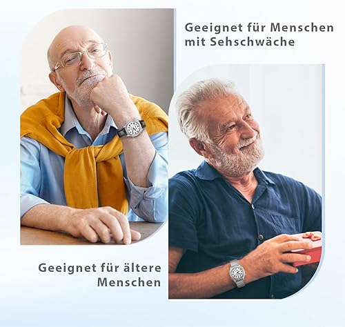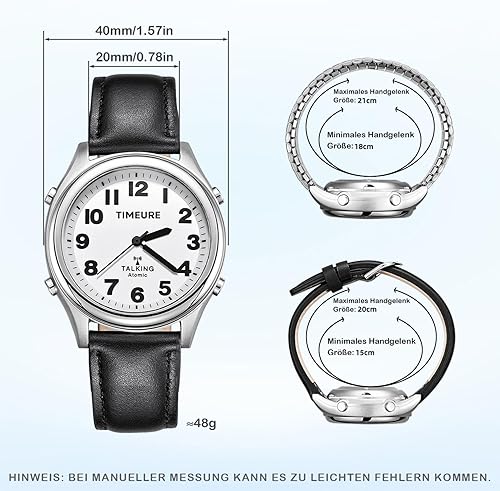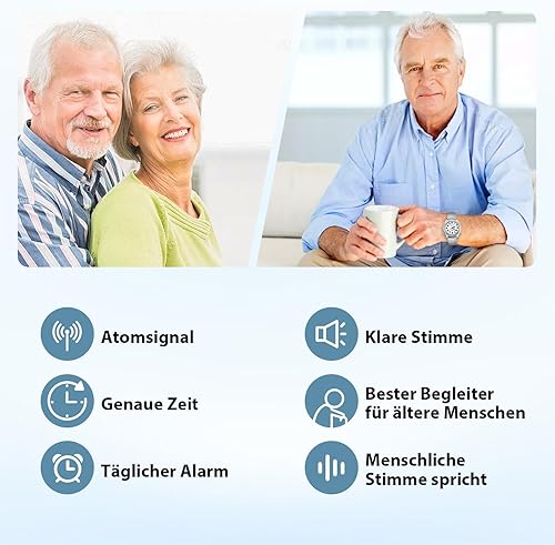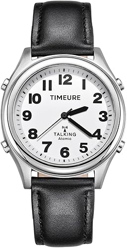 TIMEURE Montre parlante, horloge atomique, annonce vocale de l'heure/date/alarme, sonnerie horaire, pas de charge nécessaire, pas d'application, idéale pour les personnes âgées/malvoyantes, TU-0901