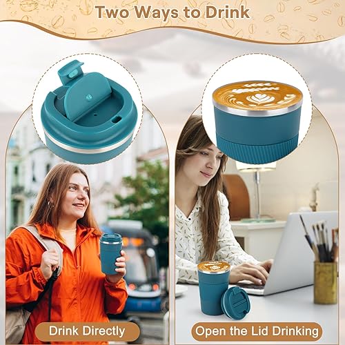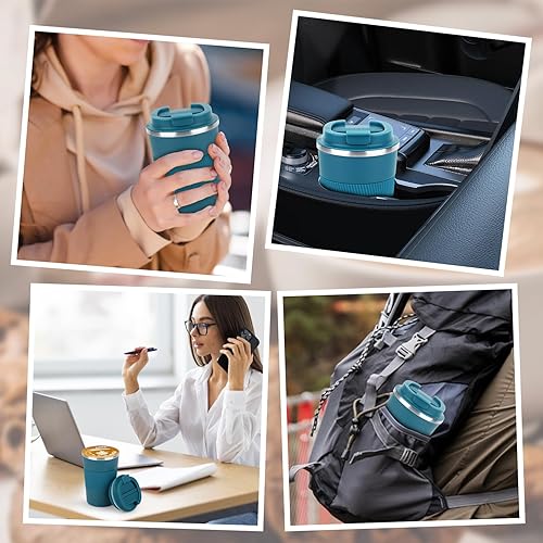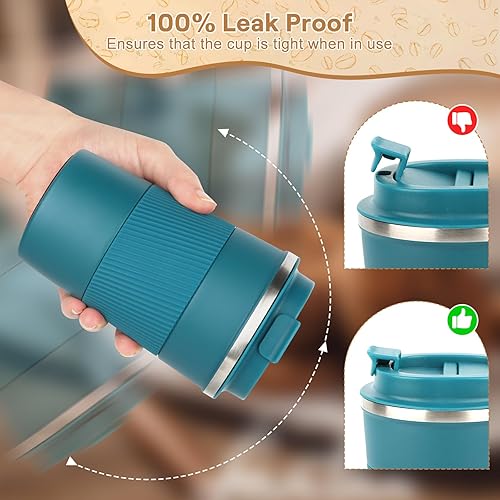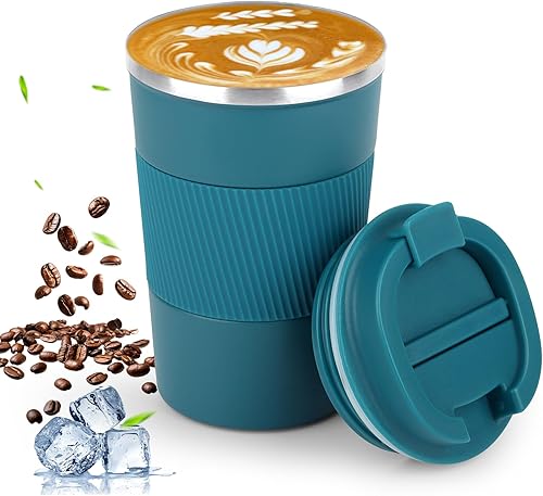 LDERFIV Mug Isotherme,13oz/380ml Thermos Café, Acier Inoxydable sous vide Anti-fuite Gobelet de Voyage avec Couvercle, Réutilisable Gobelet Isotherme, Tasse Isotherme de Voiture