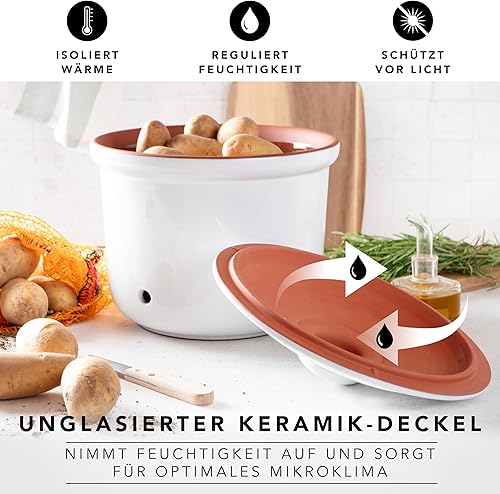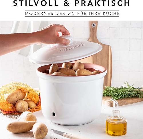 Römertopf Maxi Plus Pot fraîcheur en céramique 5,5 l – Argile respirante pour garder les légumes frais plus longtemps – Circulation de l'air idéale – Blanc
