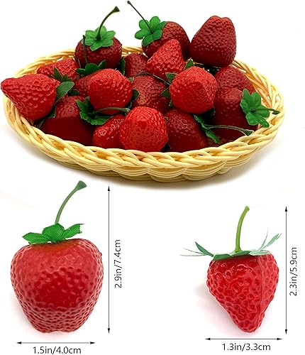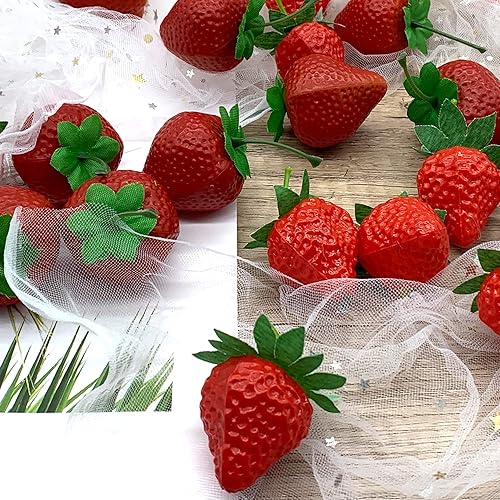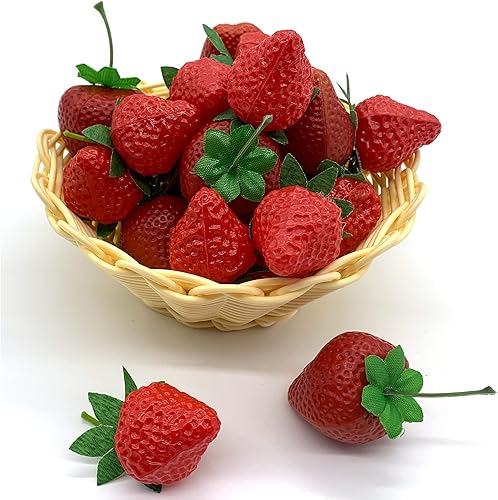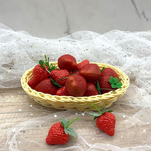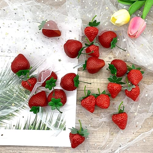DHER Fraises Fruits en Plastique Artificiel RéAliste Fruits 20 PièCes De Simulation Fruits Fraise Partie Fruit ModèLe en Plastique Fraise ModèLe DéCoration Photographie Accessoires DéCoration Fruits