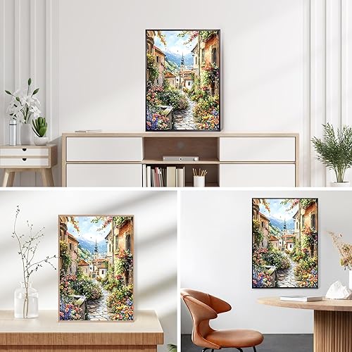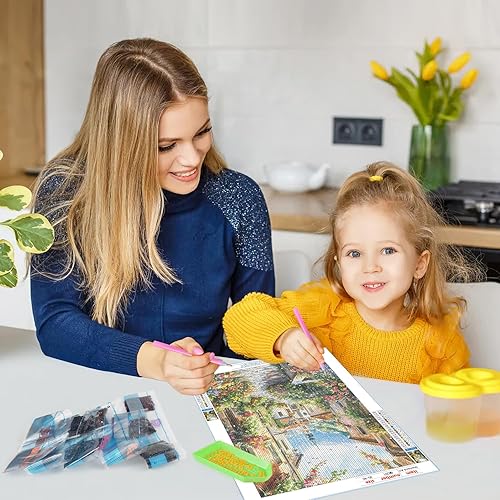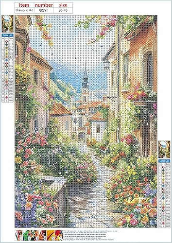 QINRUBB DIY 5D Fleurs Sauvages Peinture Diamant Painting Kit, 5D Rue Vintage Art du Diamant Complet Kits, Fleurs Diamond Art Kits Point de Croix Painting pour Adultes Débutants Maison Décor 30x40 cm