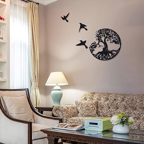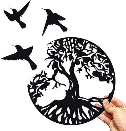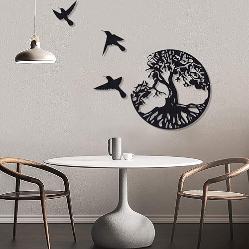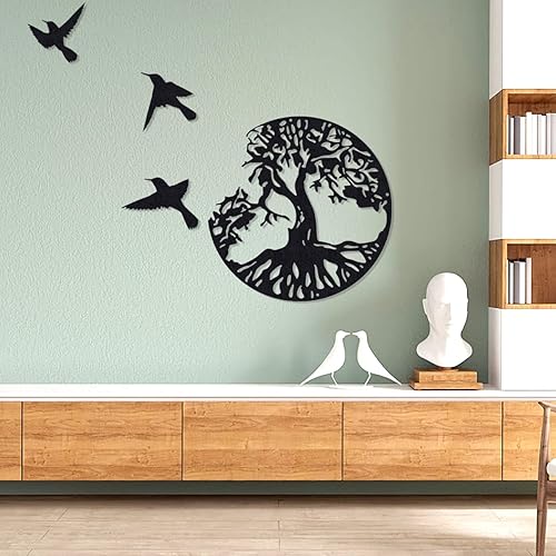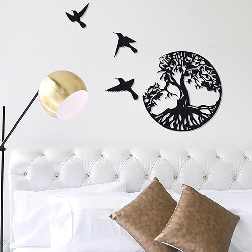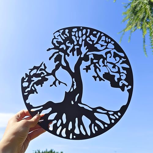 MEIYIFAN Arbre De Vie En Métal Décoration Murale Silhouette Art, 30x30cm Décoration Murale en Métal,Décoration De Jardin Intérieur Extérieur (noir)