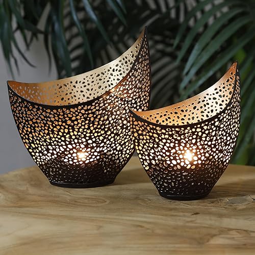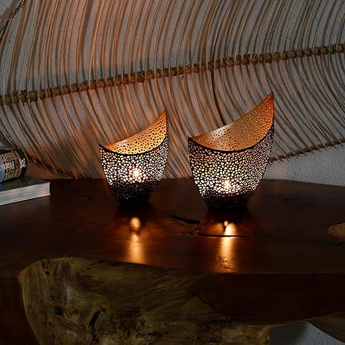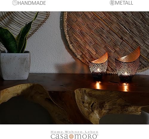 Casa Moro Lot de photophores vintage en métal noir et doré - Cadeau de lutin - Décoration de table de salon - Décoration de chambre esthétique