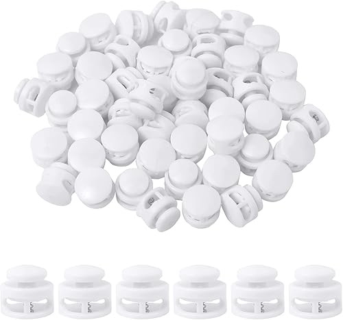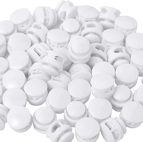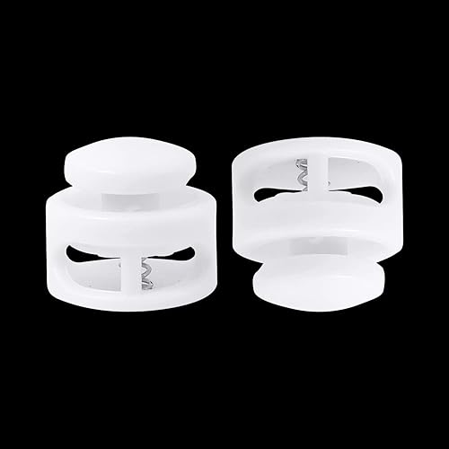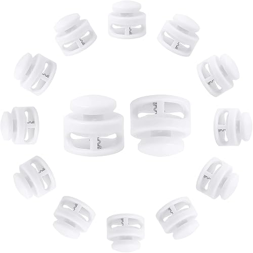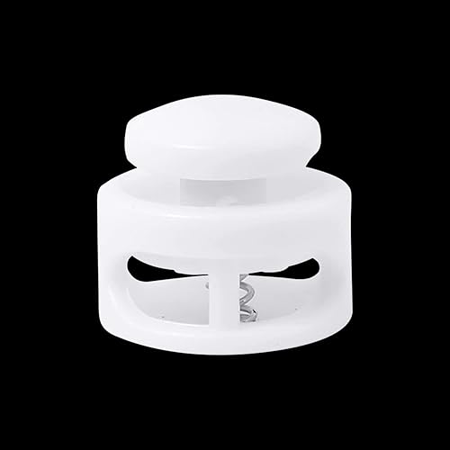 Trimming Shop Lot de 10 bloqueurs de cordon à ressort à double trou avec boutons poussoirs larges pour bagages, cordon, vêtements, projets de bricolage, sacs à dos, vêtements de sport, lacets, blanc