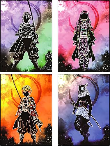 Affiche Demon-Slayer, 4 pièces Poster de l'anime Demon Slayer Tanjiro, Kimetsu no Yaiba Affiches Nezuko Affiches Tanjiro Kamado Inosuke Gatsuma Zenitsu Murale de mur Gift for Children 21x30cm