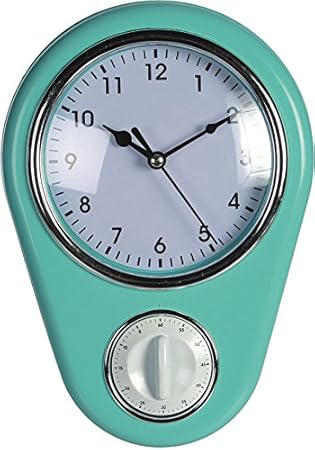 Horloge murale design rétro des années 50 « Kitchen » avec minuteur, Türkis