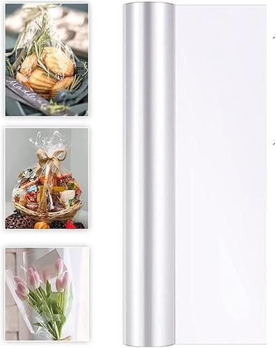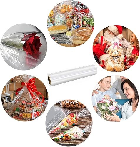 Rouleau de papier transparent - 40 cm x 30 m - Rouleau de cellophane transparent - 3 mm d'épaisseur - Sacs en cellophane transparent - Papier d'emballage transparent pour fleurs, paniers-cadeaux
