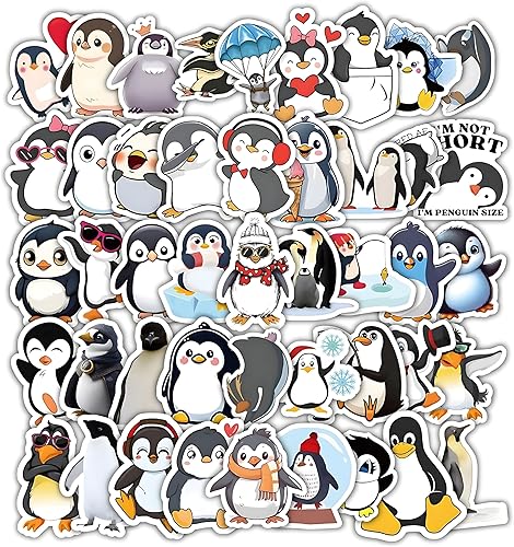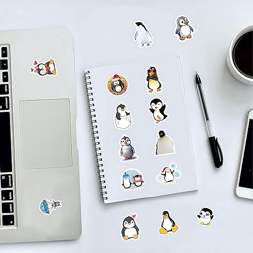 Lot de 60 autocollants pingouin - En vinyle imperméable pour ordinateur portable, skateboard, voiture, motos, etc. - Ensemble d'autocollants animaux mignons pour enfants, adolescents et adultes.