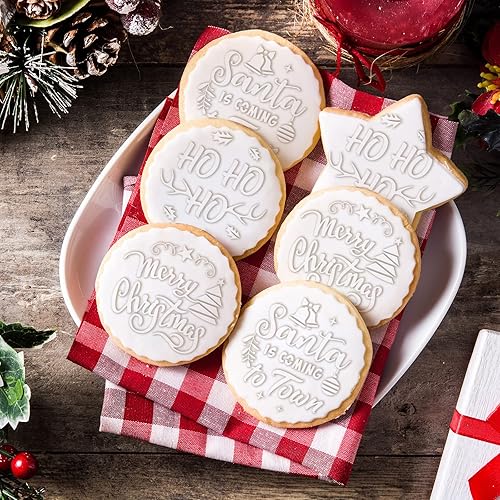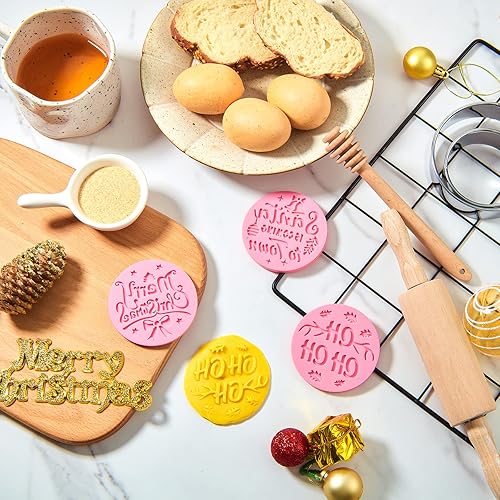 3 Pcs Tampon à Biscuits de Noël Tampon d'Embosseur de Fondant Rose Tampon de Gâteaux Merry Christmas Moule à Sablés du Santa Tampon d'Emporte-Pièces de Cupcake Noël Accessoires de Cuisson