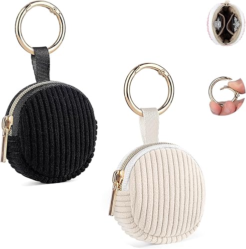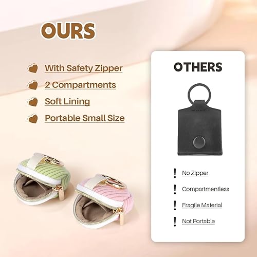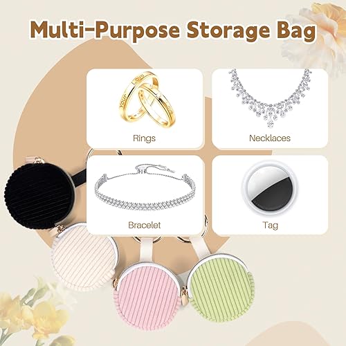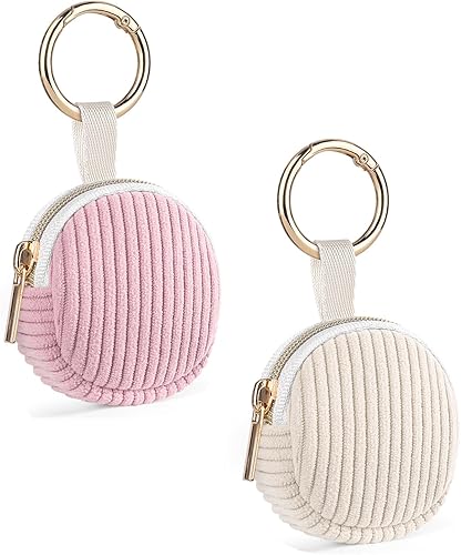 Lot de 2 Mini Pochette Bijoux Voyage Mini Boite a Bijoux Fille Femme Rangement Boucle d'Oreille en Velours Côtelé Petit Sac pour Colliers Bracelets Bagues Chaînes jewelry 5,6*5,9*2,1cm(Rose&Beige)