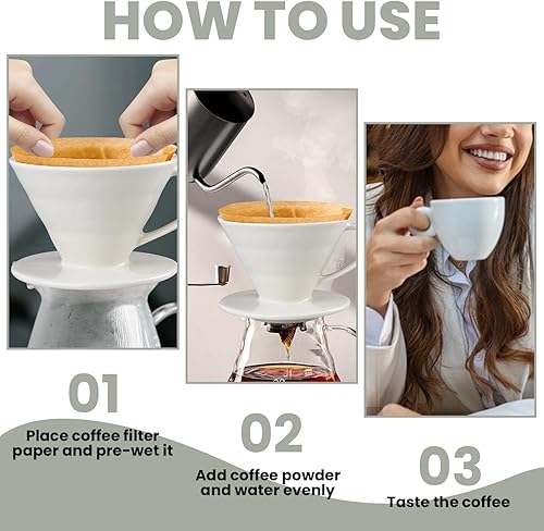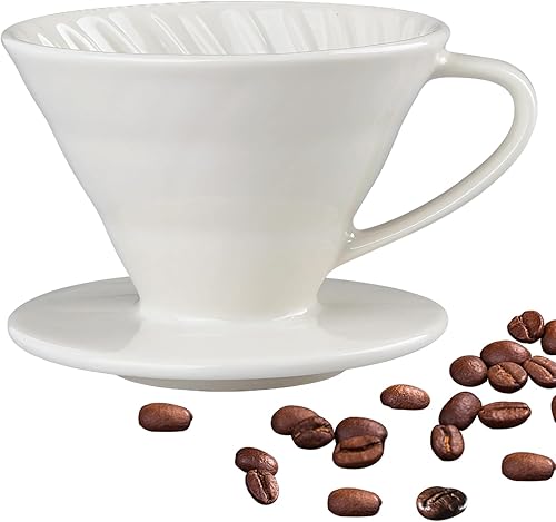 Goutteur à café en céramique V60 avec paroi intérieure en spirale - Accessoires d'infusion lente en porcelaine pour café, maison, restaurants (1 tasse)