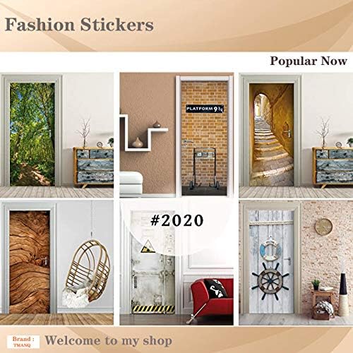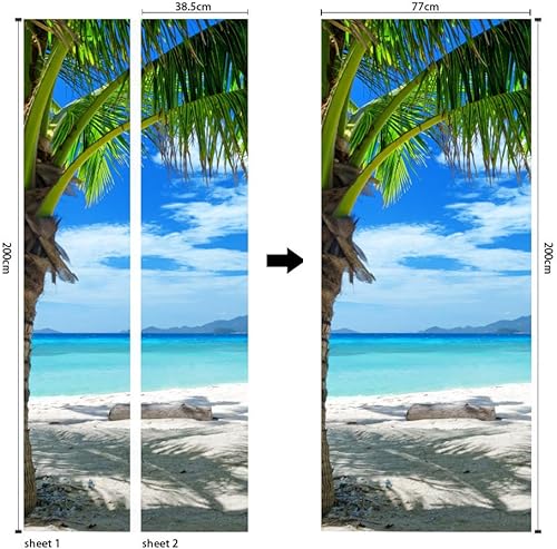 TMANQ Sticker Porte Trompe L'Oeil Effect 3D Pour Décoration Mur Salon Cuisine Chambre Salle De Bain Papier Peint 77X200Cm Palmier De Plage Bleu Auto Adhésif Amovible Art Decor Affiche