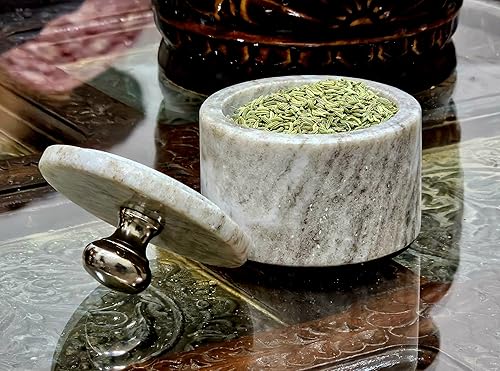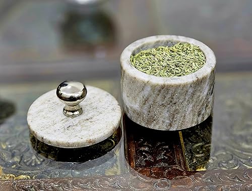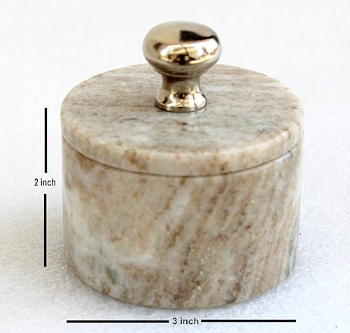 KLEO Porte-sel et épices en marbre avec couvercle | Petit récipient (5,1 x 7,6 cm) | Boîte à sel en pierre pour cuisine et salle à manger | Support de sauna (beige)
