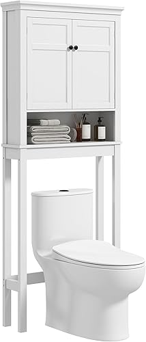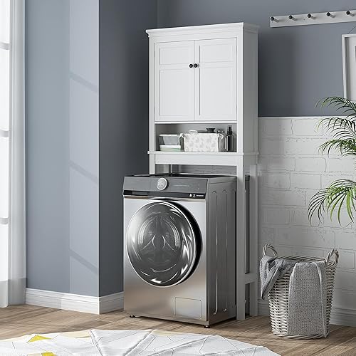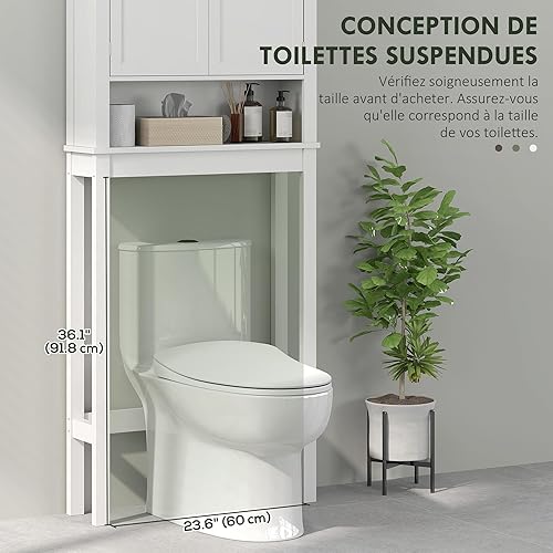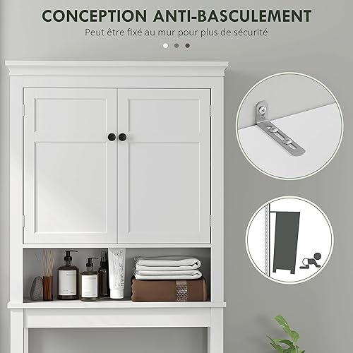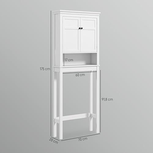 HOMCOM Meuble WC Dessus de Toilette Meuble Machine à Laver Rangement Salle de Bain avec Compartiment, Placard 2 Portes, étagères réglables - 70 x 20 x 175 cm, Blanc
