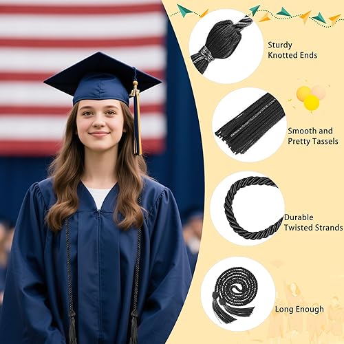 Cordon d'honneur de Graduation, Cordon d'honneur tressé avec Pompon, Décoration De Remise De Diplôme, 170 cm, pour Remise de diplôme, fête, Enterrement de Vie de Jeune Fille (Noir)