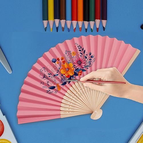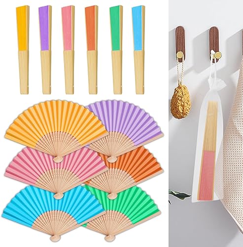 Didilor Lot de 6 éventails pliants en bambou faits à la main pour cadeau de mariage, fête, décoration de la maison