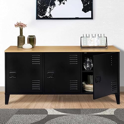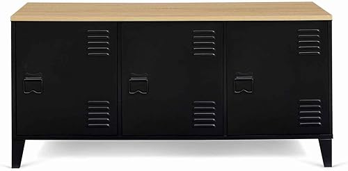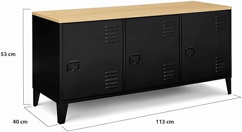 IDMarket - Buffet Bas 113 cm Ester 3 Portes métal Noir Plateau Bois Design Industriel