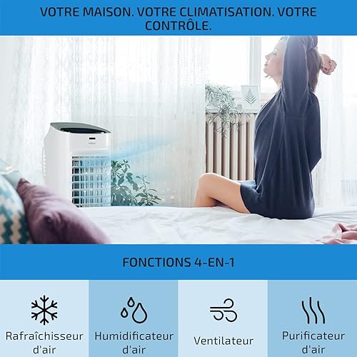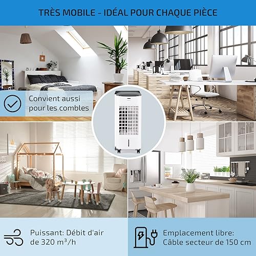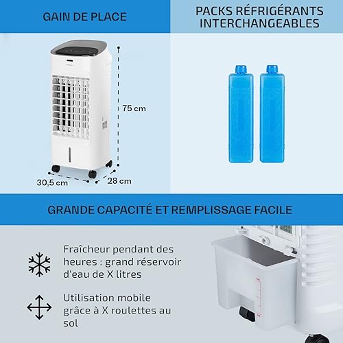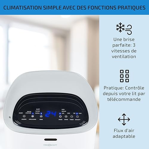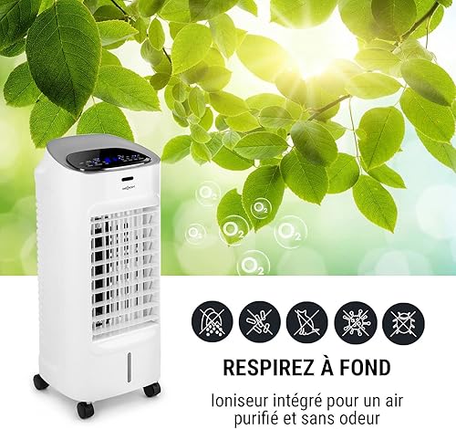 oneConcept Rafraichisseur d'Air Mobile 4 en 1, Refroidisseur d'Air par Evaporation, Mode Nuit, Humidificateur, Ioniseur, Climatiseur Mobile Sans Évacuation et Silencieux, 60W, Débit d'Air 320m³/h