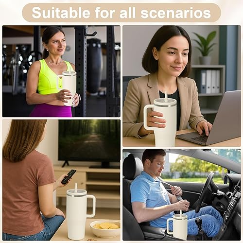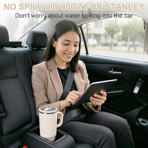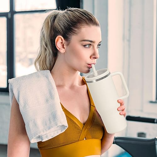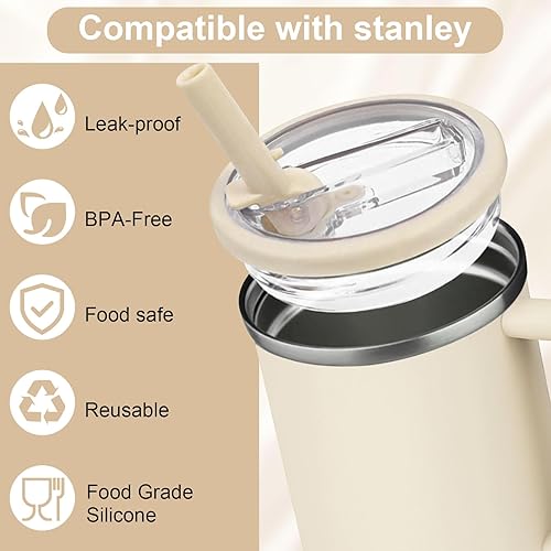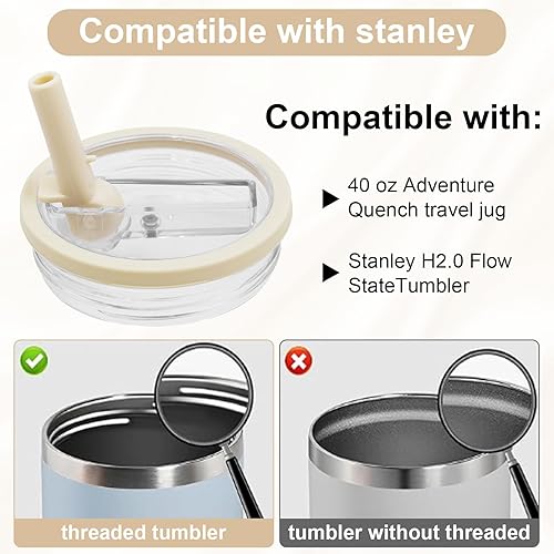 Druuzyl 2Pcs Couvercles de Remplacement 40oz pour Stanley Cup – Compatible avec Quencher H2.0 FlowState, Anti-Fuite et Anti-Poussière, Inclut 2 Pailles, Couvercle Réutilisable pour Tumbler (Beige)
