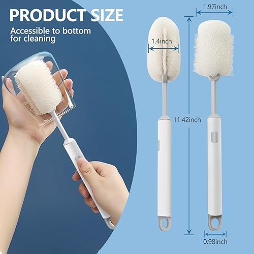 OAKENCREST Lot de 2 Brosses à Bouteilles, Brosse Biberon Bébé, Goupillon Biberon Doux, Ensemble de Nettoyage Biberon Brosse, sans BPA, pour Toutes Les Tailles de Biberons