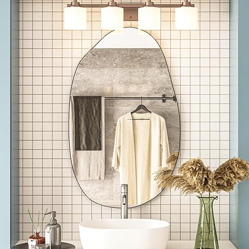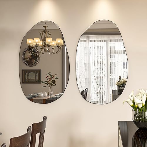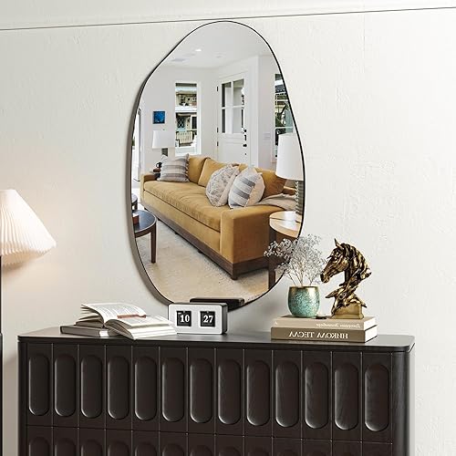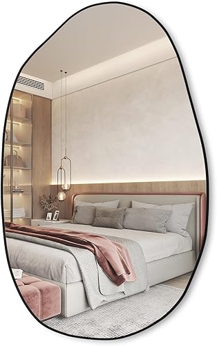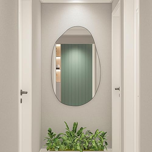Elemango 85 x 52 cm - Miroir mural irrégulier - Miroir asymétrique - Miroir cosmétique unique - Miroir de dressing moulé - Décoratif pour salon, salle de bain, chambre à coucher