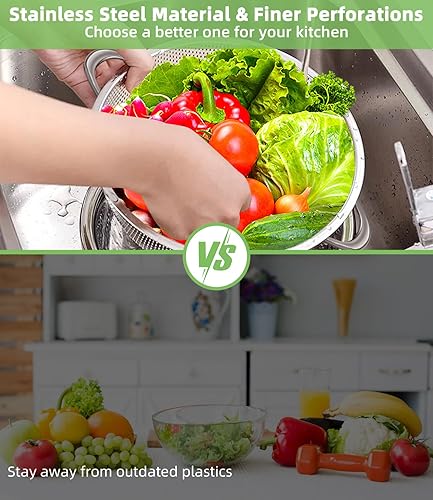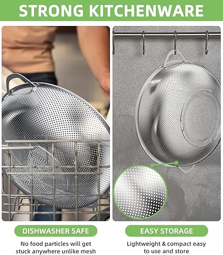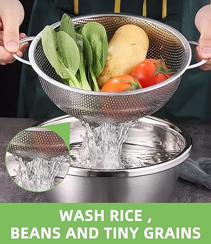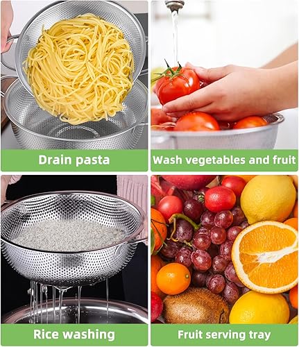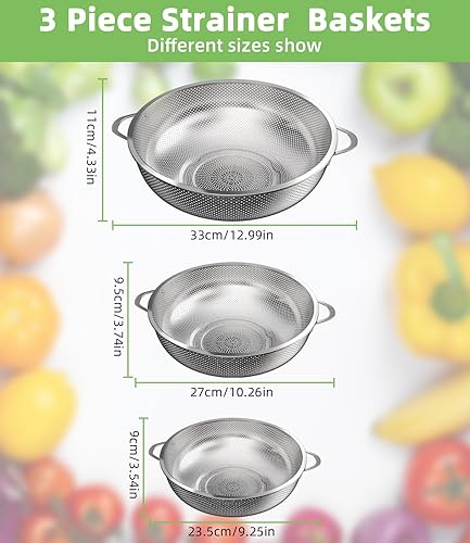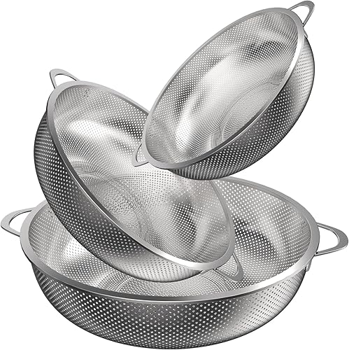 Yulado 3 Passoire Cuisine, Egouttoir Pates En Acier Inoxydable Avec Poignée, Diamètre Extérieur 9.25/10.26/12.99 Pouces, Petite Passoire Cuisine Perforée, Rincer Les Légumes Et Les Fruits Filtration