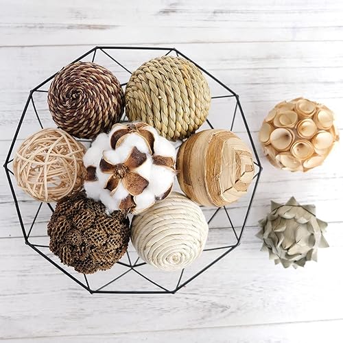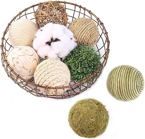 CIR OASES Lot de 9 boules décoratives tricolores multi-matériaux en rotin naturel, boule de coton, utilisée pour remplir un vase, décoration de table (vert)