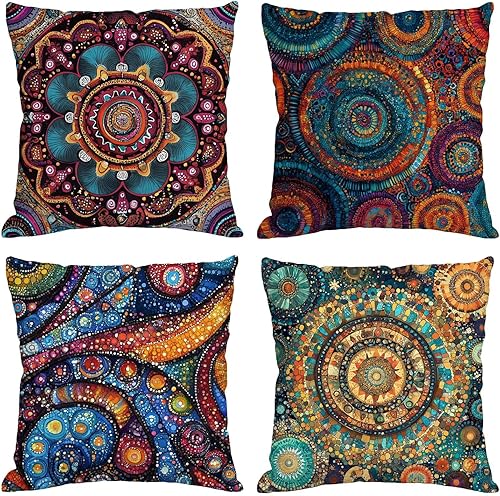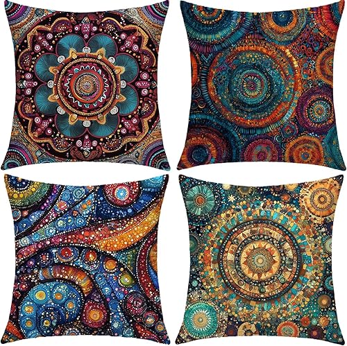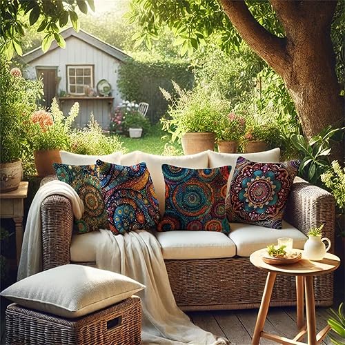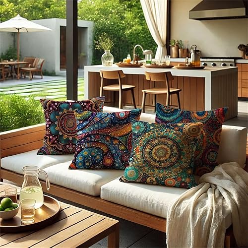 Abstrait Coussin Exterieur Impermeable 40x40cm Grande Housse Coussin Coloré Double Face Imprimé Lot de 4 Lin Taie Oreiller Canap Salon Intérieur/Extérieur Jardin Printemps Été Decor Cadeaux BZ-602