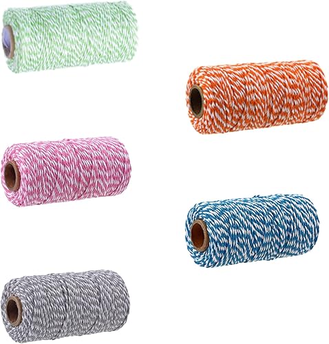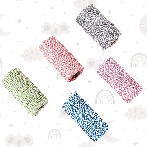 Eterspr 5 Rouleaux Fil de Coton Bicolore, Corde Coton pour l'Emballage de Cadeaux, Convient pour Le Bricolage, la Décoration et l'emballage de Cadeaux