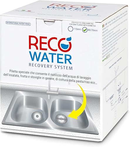 Drain d'évier pour Récupération d'Eau à la Maison RECO', Pour éviers de cuisine avec capuchon diam. 70mm, Économisez de l'eau Chaque Jour, Produit Italien