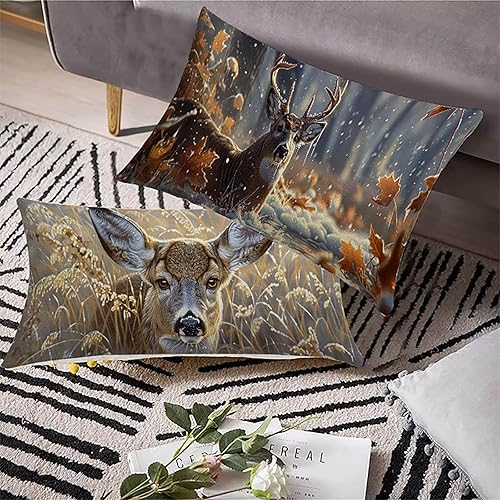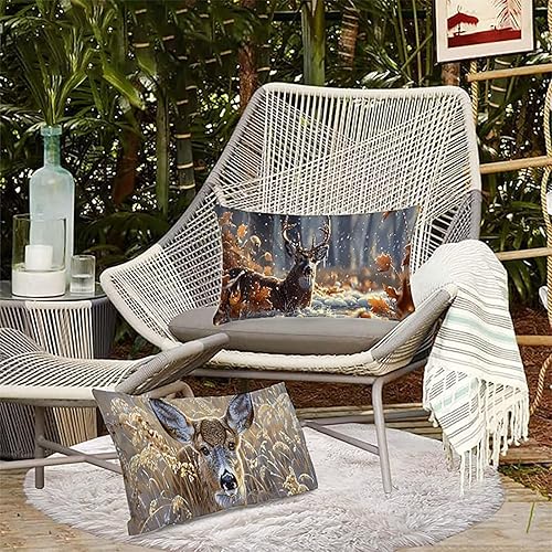 Coussin Canape Animal Lot de 2 Housse Coussin Exterieur Cerf 50x70 cm Impermeable Lin Couture éclair Cachée pour Canapé Office Salon Chambre Chaise Maison Été decoratif salon de jardin Cadeau BY5 5-Y