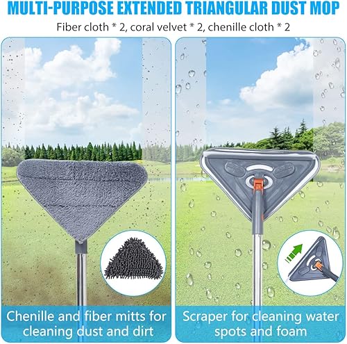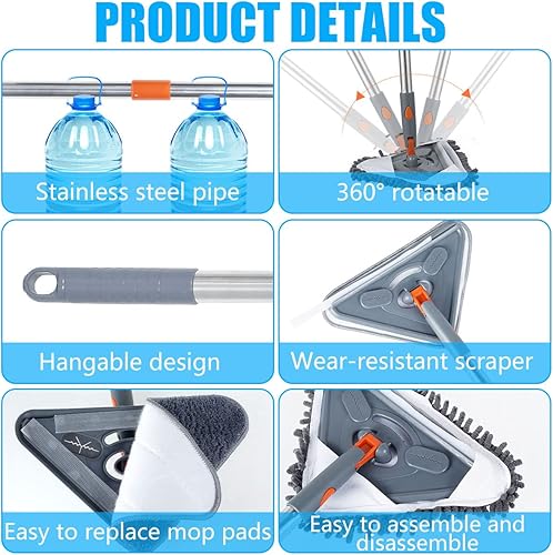 Keyohome Vadrouille de Nettoyage Réglable Rotative à 360°, Serpillère de Nettoyage en Microfibre avec Longue Poignée, Balai de Nettoyage Triangle pour Plafond, Vitre, Sol, Mural(A)