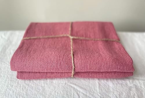 JOWOLLINA Serviette de bain gaufrée fine en lin délavé (bordeaux, 100 x 160 cm)