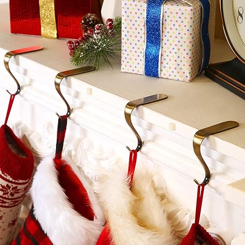Porte-bas de Noël, 4 pièces Crochet de Chaussette de Noël Crochets de bas en métal Clips de Bas de Noël Crochet de cheminée de Noël Clips de suspension pour décorations de fête de table de Noël