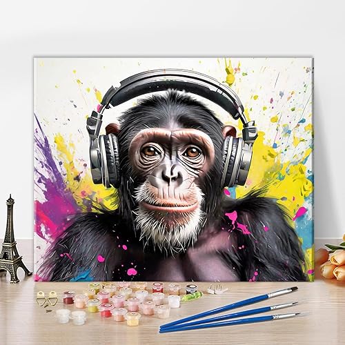 TISHIRON Graffiti par numéros pour adultes aquarelle adulte bricolage singe porte casque par numéro animaux arts artisanat par numéros kits nordique moderne maison mur 40 x 50 cm décor sans cadre