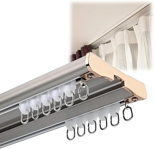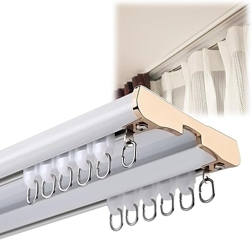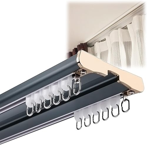 Rail de Plafond en Aluminium Double Rails de Rideaux 70 120 180 200 250 300 350 400 cm Rail de Rideau de Plafond À Double Rangée pour Bureau À Domicile(Blue,11.5FT(350CM))