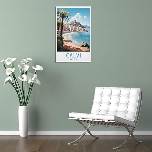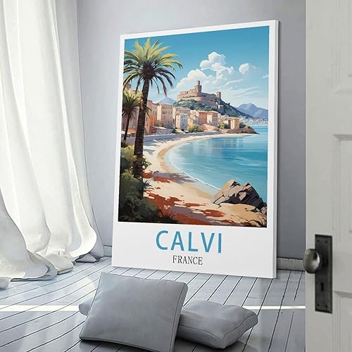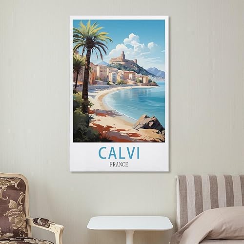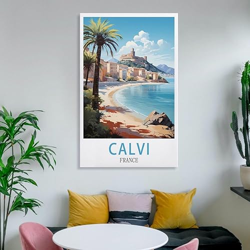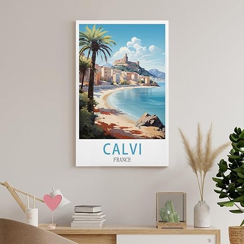 LOLWNNI Affiche de voyage vintage Calvi France 20 x 30 cm Impression sur toile pour décoration de salon et chambre à coucher