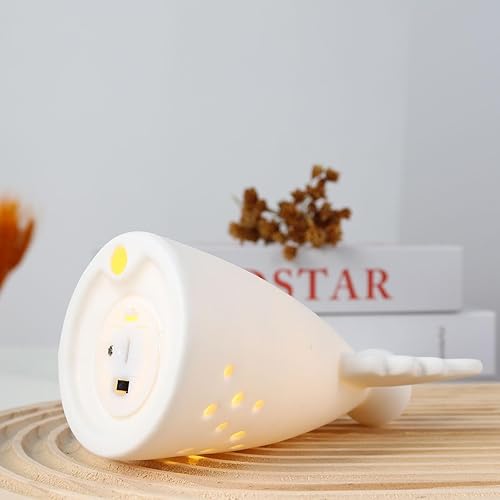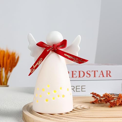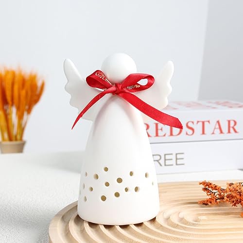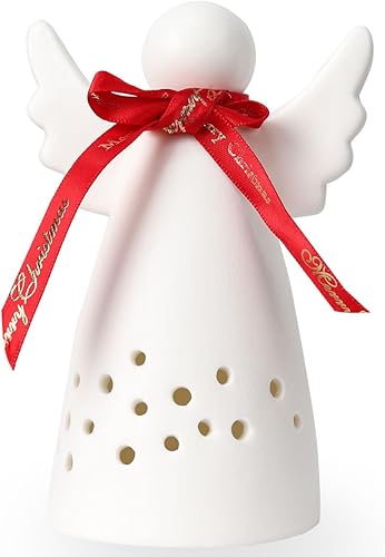Yeerockal Photophore Ange en Céramique Blanc Mat avec Lanterne LED de Noël Design Décoratif Piles LR44 Incluses
