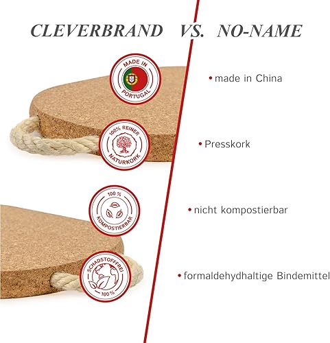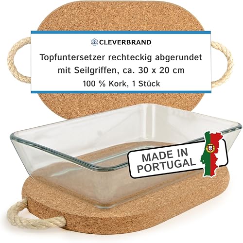 Cleverbrand Dessous de Plat en liège avec Cordon (env. 30 x 20 cm, env. 20 mm d'épaisseur)