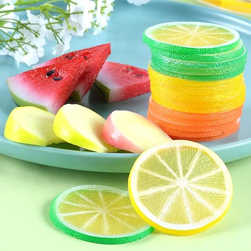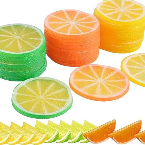 37 Pièces Tranches De Citron Artificielles, Transparents Faux Fruits Artificiels, Plastique Tranche Citron, Fausses Tranches De Citron, Tranches De Citron en PVC, Imitation Tranche Citron Décoration