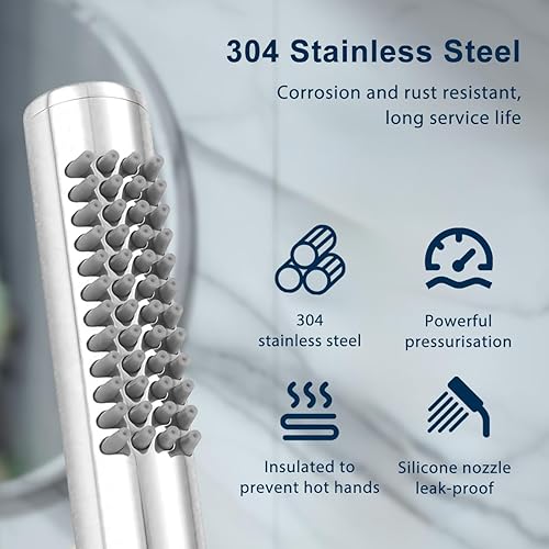 Drenky Pommeau De Douche Economie Deau En Acier Inoxydable 304 Ronde Douchette Douche Haute Pression Avec 48 Jets Anti-Calcaire En Silicone Pommeau Douches Salle De Bain