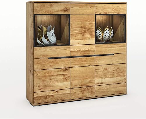 Elfo Lola Vitrine haut en chêne partiellement massif plaqué l 162 x H 148 x P 42 cm