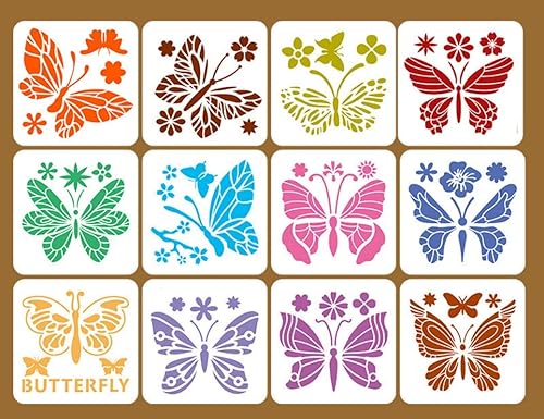Lot de 12 pochoirs à dessin en forme de papillon - Réutilisables - Pour bricolage et décoration murale